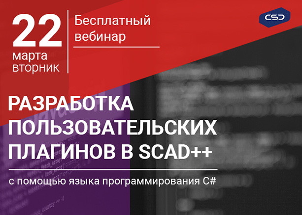 Присоединяйтесь к бесплатному вебинару и откройте для себя новые возможности работы с плагинами для SCAD++! Это отличный шанс расширить свои знания, узнать о современных инструментах и их применении в проектной практике.